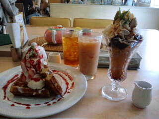 Liptonの専門店でドリンクとパフェとワッフルをたのみました
