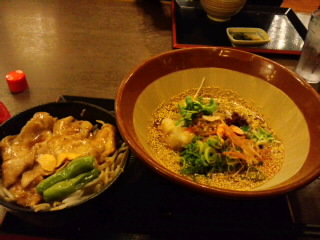 写真のご飯は、薬膳そばと塩豚丼です